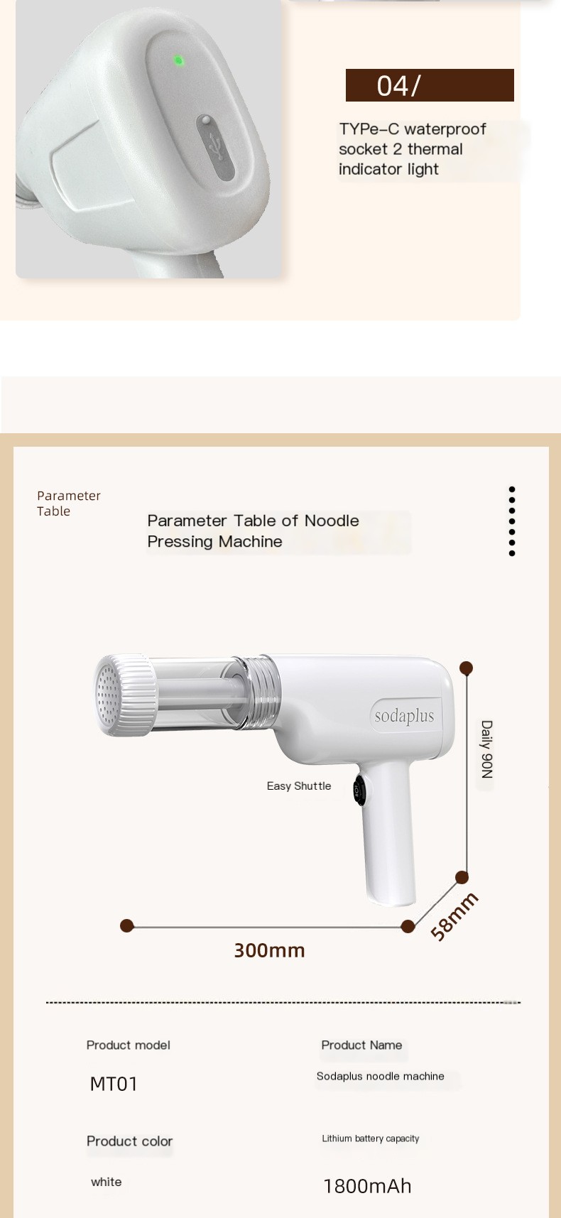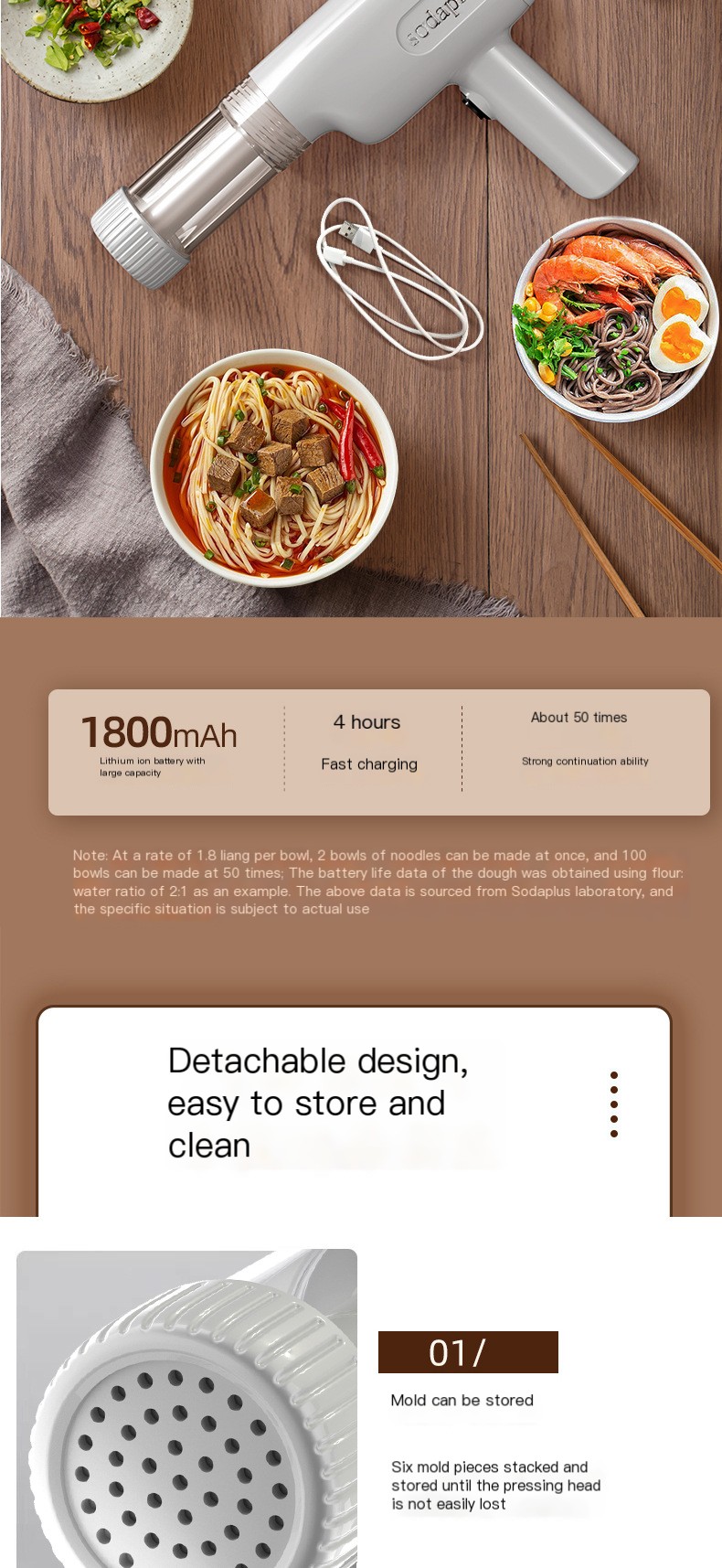With a rated capacity of 200g of dough and powered by a 1500mAh Li-ion battery, this noodle maker can be fully charged via USB and used for about 45 noodle-making sessions. Imagine creating fresh noodles for your family and friends without the hassle of manual preparation!