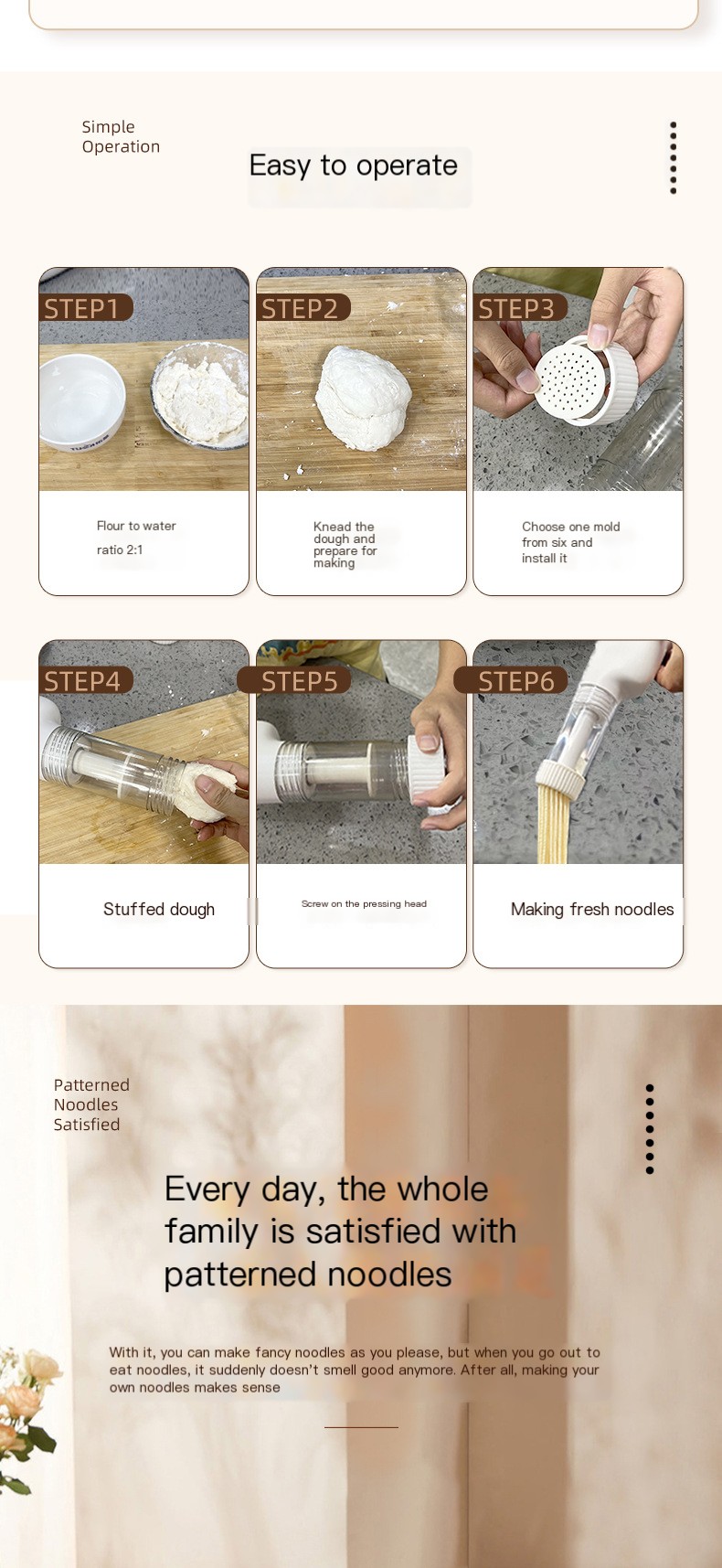 The electric noodle maker comes with 6 different molds, allowing you to customize your noodle shapes and sizes to suit any dish. From spaghetti to fettuccine, the possibilities are endless!